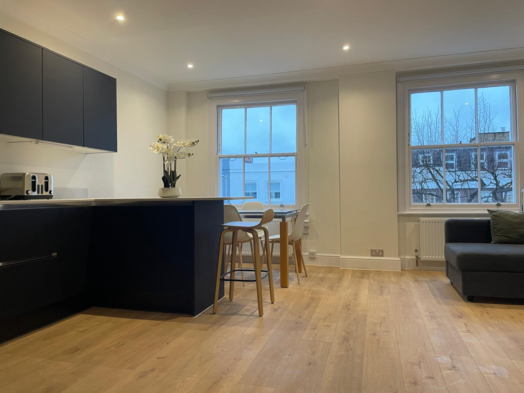A three double bedroom bedroom, three bathroom apartment over two floors with roof terrace. Situated only moments from Holland Park. In the heart of Kensington close to the many lively bars and restaurants. Kensington High Street underground station is a short walk away.
