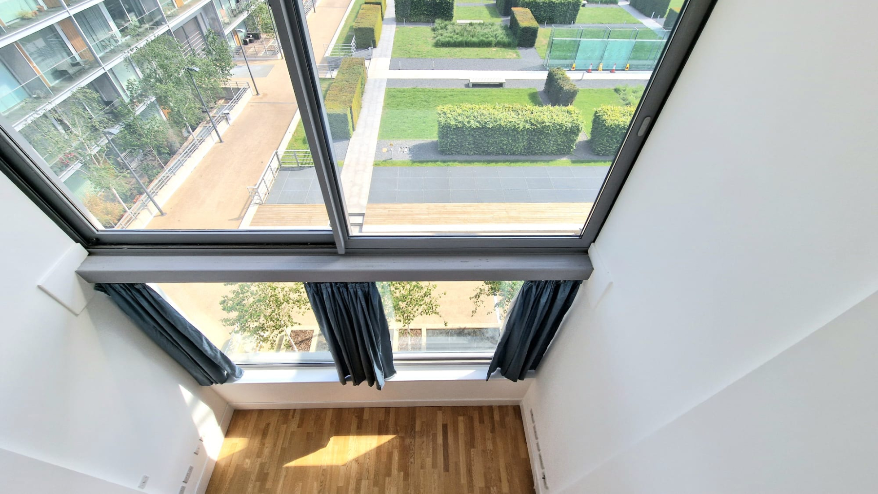 Split-level flat on the second and third floor with floor to ceiling windows and garden views. On the site of the former Arsenal Football Club.